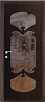 Коттеджная входная дверь МДФ с зеркалом и натуральным шпоном с ковкой и стеклом