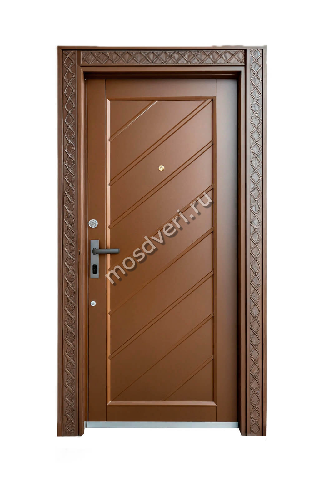 Красивая элитная дверь коричневая входная с рисунком КДД-020 — сочетает в себе современный дизайн и высокую надёжность.