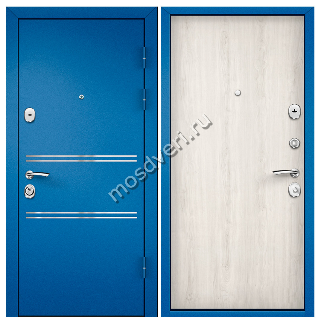 Синие входные двери в квартиру SVK-10 — объединяет стильный внешний вид и высокую надёжность.